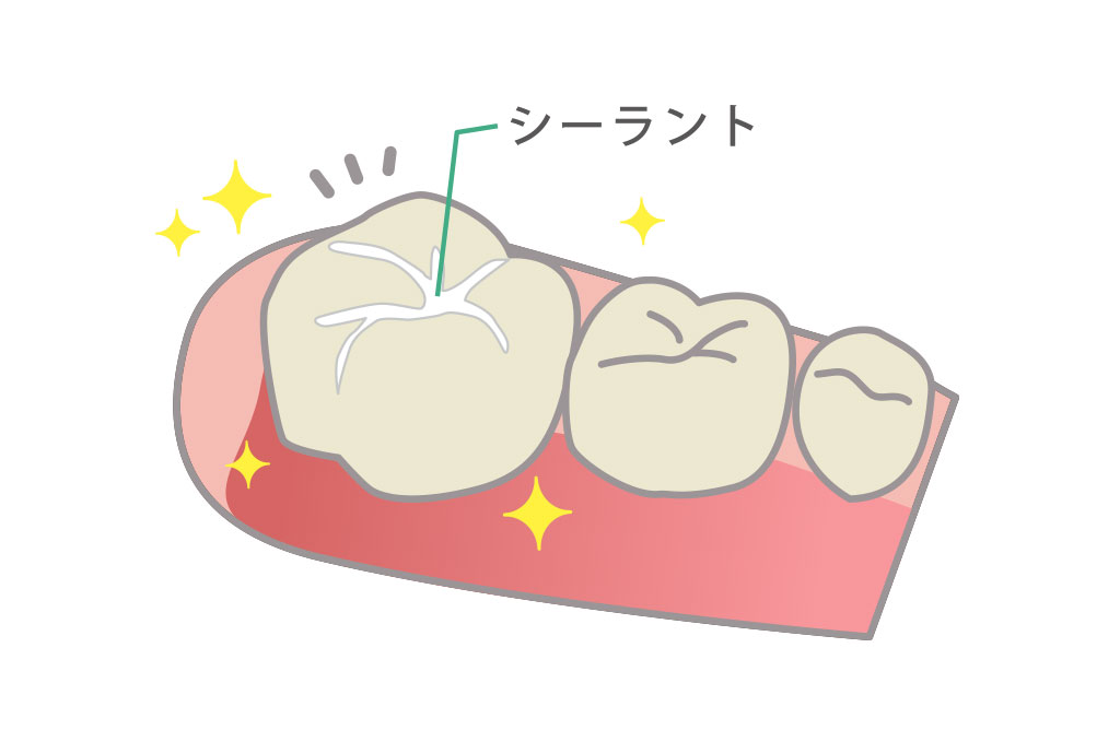 歯の溝を歯科用プラスチックでコーティングします。特に磨き残しが溜まりやすい奥歯など、むし歯になる前にフタをしてむし歯を防ぎます。