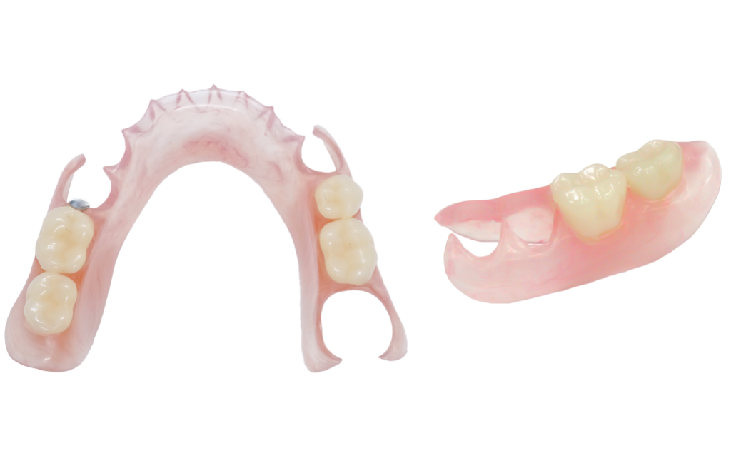 歯肉の色になじむピンク色の樹脂を使用することで、笑ったときなどに目立たない入れ歯です。